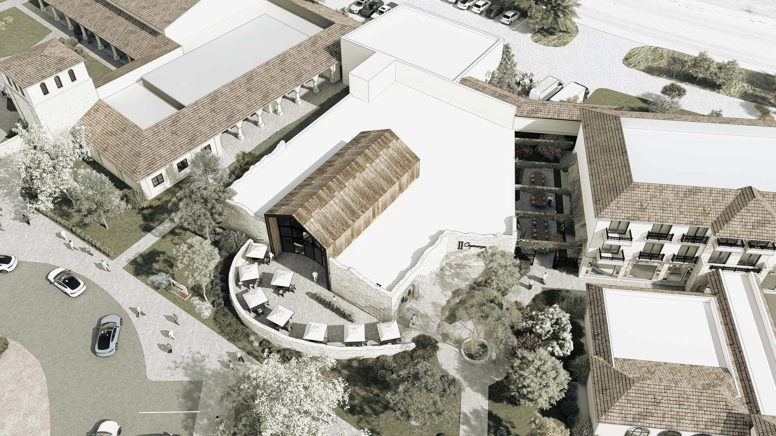 While unbuilt, the Allegretto Resort Expansion remains a compelling example of visionary hospitality planning—demonstrating how strategic design can integrate luxury accommodations, wellness, culinary experiences, and event programming into a unified destination. The renderings capture the scale and elegance of that vision, offering a glimpse into the level of planning, creativity, and placemaking behind the concept.